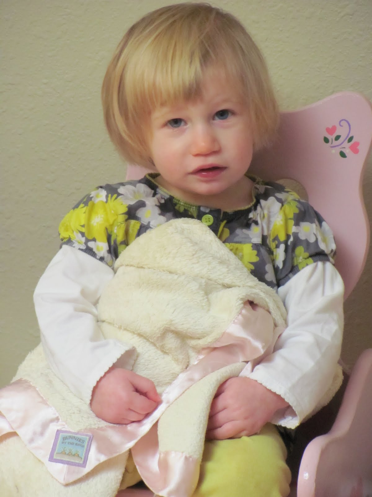 We’ll end with a picture of Clare and her beloved blanky. She loves that thing – so much that I’ve bought 4 of them so that we have two at the house (one is always being washed), one at my parents house and one at nannyshare. Clare also uses a binky for sleeping and we work pretty hard to reinforce that it’s for sleeping only. The blanky, however, has a little more freedom to roam and often comes out for middle of the day snuggling. We’re still fighting the February sniffles (I think Clare has had a runny nose for 4 weeks straight) so blanky has been in demand.