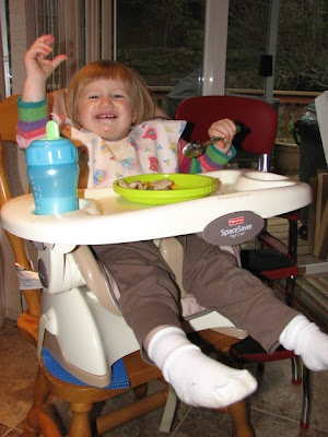 Moving whining aside, Clare is pretty cute these days. She struggled with the move a little bit so we saw some extra whining, testing and general crankiness. Fortunately the struggle is over and she loves her new house. I planned to set up her room like a reading nook with all of her books and comfy places to sit – I figured she’d love the quiet time in there. Nope. No more quiet time in this house! While Clare regularly played quietly in her room in the condo, in the new house she likes to run, generally shrieking or singing, from one end of the house to the other. I think she likes to be able to stretch her legs. She also likes to look out the windows, point out when the neighbors wind “chines” are chiming, and climb on the kitchen chairs.