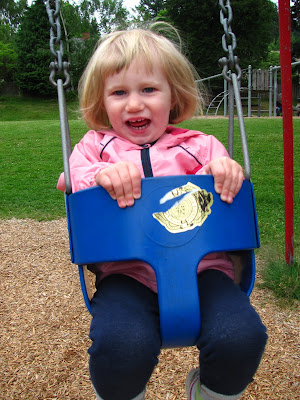 I took this picture a few days ago. Clare was not happy that I picked her up at nannyshare that day (she wanted to stay and play with G) – I asked her if she was sad to leave G and Adam. She said, tearfully, “yes Mama! I want to stay and play!” When we got home I started dinner and she packed her play phone into her purse, tucked her lion under her arm, and went out into the backyard. When I tried to follow her she told me “No! By self!” She and Lion spent about 20 minutes playing on the climber, chatting (no doubt about how mean Mama is), sliding together, and generally having a good time.