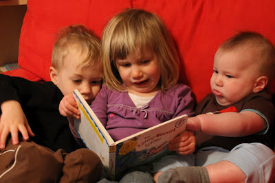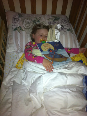 I’ll end with a few pictures of sweet sleeping children. Clare prefers to “read” her books after we turn off the lights, so we leave a little nightlight on for her. After 20 or so minutes I’ll come back, take the book away and turn off the nightlight. This night she was especially tired and was already asleep, with the book, by the time I got there. It was to sweet not to take a pciture. (Yes, she still sleeps with a binky at night. I’m not sure how to handle this situation…)