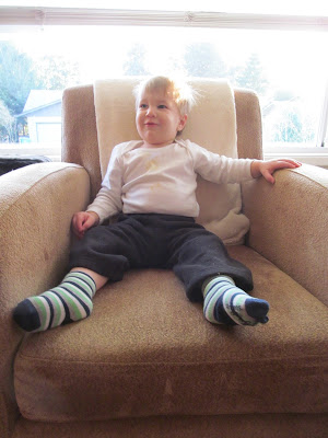 One of Sam’s new favorite activities is to spin himself in circles until he falls on the floor. For some reason he only does this over the tile floor of the kitchen, but hard thumps on the tile hasn’t stopped him. He spins around, grinning, until he tumbles down and then rolls around on the ground giggling.