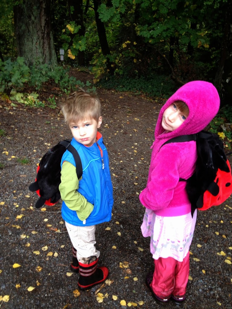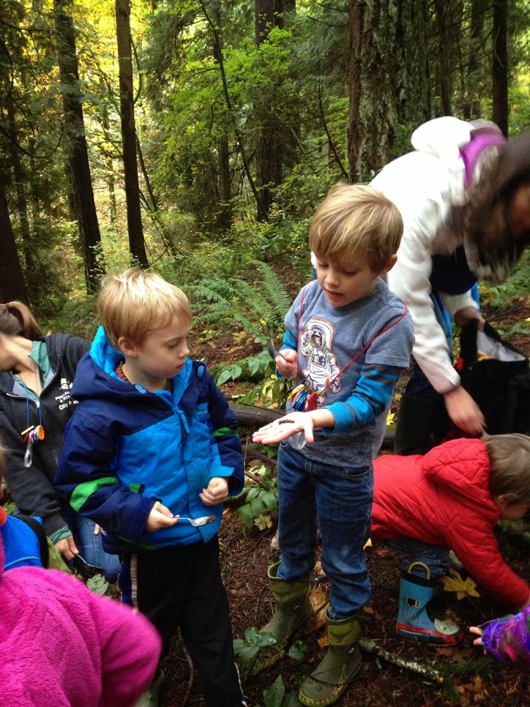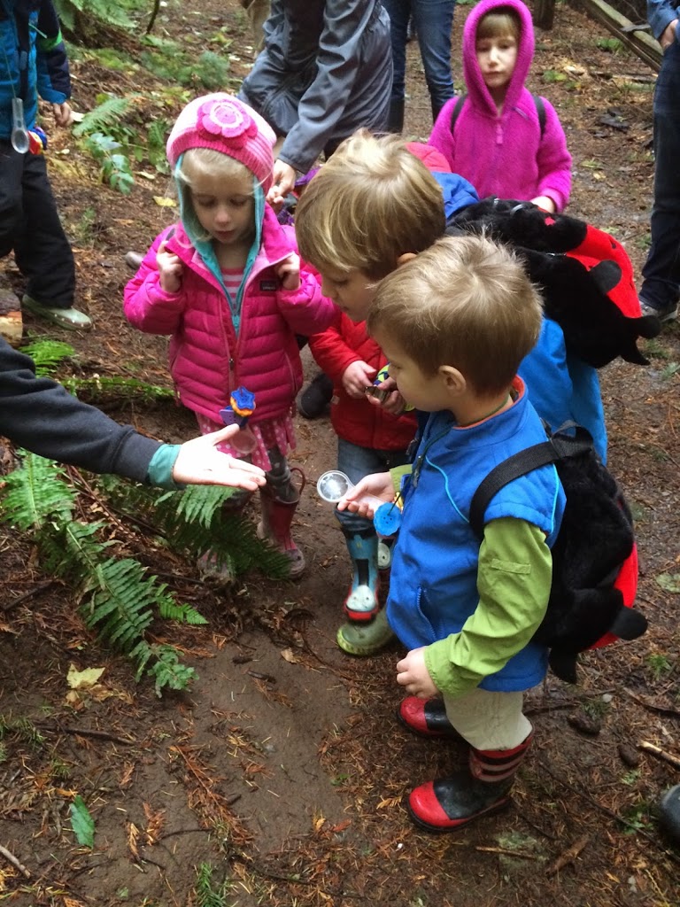 Your scientific discovery has lead you to bugs and animals as your new favorite topics. Any time you’re outside, you’re looking for spiders, ants, worms, centipedes, caterpillars, slugs and snails. For your birthday party we arranged for a Ladybug Walk, which is an event that Portland Parks and Rec does. A naturalist lead a group of you and your friends on a “hike” in the park looking for bugs. You found several bugs, touched moss and lichen, dug in the mud and generally had a wonderful time.